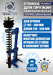 Профессиональная. Напольная с ножным приводом. Экономит время. Облегчает монтаж / демонтаж особо прочных пружин со стойки. Для работы со стойками легковых автомобилей, джипов, микроавтобусов и коммерческого автотранспорта. 8 Ступенчатая регулировка (регулируется по длине пружины). С гидравлическим цилиндром усилием 1000 кг. Ход поршня 325 мм. Диаметр пружины 101 - 180 мм. Рабочая длина min-max 195-520 мм. В комплекте 4 адаптера чашки + страховочная цепь.