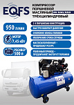 Компрессор поршневой с ременной передачей: давление 10 Атм, мощность 5,5 кВт, емкость ресивера 500 л., производительность 950 л/мин, напряжение 380В. Двигатель производства Франция. Сфера применения: грузовые шиномонтажи, автосервисные, ремонтные, промышленные и производственные предприятия.