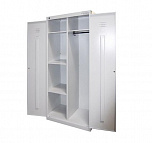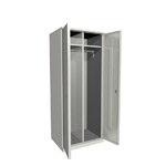 Шкаф металлический сборный двухсекционный. Шкаф окрашен порошковой краской светло-серого цвета RAL 7035. Размеры: 1850x600x500 мм.
