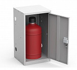 Металлический шкаф для газовых баллонов, разборный имеет размеры: 660 х 400 х 406 мм, масса:9 кг. предназначен для хранения одного газового баллона объемом 27 литров. Газовый баллон помещенный в шкаф изолирован от внешнего воздействия, осадков и солнечного света. Дверца газового шкафа оборудована петлей под навесной замок и в целях безопасности шкаф для газовых баллонов может закрываться на замок. Можно использовать в небольших гаражах.