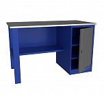 Верстак однотумбовый поставляется в разобранном виде. Нагрузка на столешницу до 600 кг. Стандартный цвет: корпус - серый глянец RAL 7030, ящики и двери тумб - синий RAL 5017. Размеры:855x1400x700 мм. Вес: 65 кг.