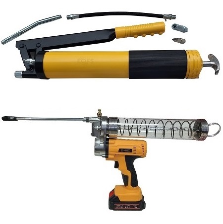 "СВОБОДНЫЕ РУКИ" - Ножной привод. На колесах. Продавливает «ЗАБИТЫЕ» тавотницы. Давление смазки 350-400 Атм. Пистолет с наконечником под тавотницы производительность 400 г/мин. Для шприцевания шарнирных соединений (тавотниц, крестовин, подшипников, цепей). Применение везде (цех, поле и т.п.). Заправка смазкой из ведра, тубы, бочки. Вес 10 кг, длина шланга 2,5м. Емкость бака 13 кг.