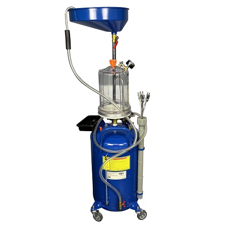 Установка для слива и откачки щупами масла и антифриза из ДВС, КПП и мостов всех авто. В комплекте: Колба + сливная чаша с сеткой для улавливания мелких деталей + щупы гибкие 5 шт. + лоток для сливной пробки + стрелочная индикация уровня разрежения + визуальный контроль уровня отработки + пистолеты для откачки масла + быстросъёмный штуцер для пневмолинии. Вмещает 100 л. = Бак 80л + колба 10 л. + сливная воронка 10л.