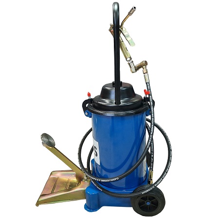 Ножной привод. На колесах. Продавливает «ЗАБИТЫЕ» тавотницы. Давление смазки 350-400 Атм. Пистолет с наконечником под тавотницы производительность 400 г/мин. Для шприцевания шарнирных соединений (тавотниц, крестовин, подшипников, цепей). Применение везде (цех, поле и т.п.). Заправка смазкой из ведра, тубы, бочки. Вес 10 кг, длина шланга 2,5м. Емкость бака 13 кг.
