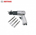 Пневмомолоток + 4 зубила предназначены для проведения как отбойных, так и зачистных работ. Частота ударов 3200/мин. Длина хода поршня 66 мм. Хвостовик зубила (шестигранник) 10,1 мм.