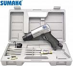 Пневмомолоток с двумя зубилами предназначен для проведения ремонтных работ с возможностью использования ударного механизма. Зубила (2 шт.) длиной 175 мм. Расход воздуха: 110 л/мин. Звуковое давление: 96 дБА. Вибрация: 11 м/с². Скорость: 2100 уд/мин. Ход поршня: 89 мм. Давление: 6,1 атм. Резьба вход. отверстия: 1/4"