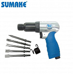 Пневмозубило с набором зубил (4шт х 150мм) Ход поршня 41мм. Частота ударов 4500уд/мин. Рекомендуется для резки металла толщиной до 2мм, кузовных работ, удаления заклёпок, срезки болтов, гвоздей и т.п.Также рекомендуется для отбойных и демонтажных работ по бетону. Для рубки металла на кузовных станциях.