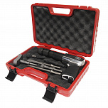 Набор выколоток для пневмомолотка в прочном презентабельном боксе (6 предметов). Длина 177 мм. Размеры: 5.2, 6.5, 6.9, 7.7, 9.3, 12.7 мм. Материал: среднеуглеродистая хромомолибденовая легированная сталь.