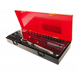 Набор диэлектрический 24 предмета. В комплекте: трещотка 1/2"; изолированный удлинитель 5"; изолированные головки 1/2": 10, 12, 13, 14, 17, 19, 22, 24 мм; ключ с Т-образной рукояткой с изоляцией 1/2", нож электромонтажный; отвертки с изоляцией: РН1х4", РН2х4", шлицевая 5.5х5", 4.0х4"; рожковый ключ с изоляцией: 7, 8, 10, 12, 14 мм; клещи с изоляцией: 8" универсальные клещи, 6", бокорезы.