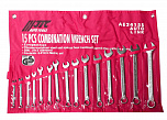 Набор ключей комбинированных 6-21 мм. 15 предметов. В комплекте: 6, 7, 8, 9, 10, 11, 12, 13, 14, 15, 16, 17, 18, 19, 21 мм. Зеркальная полировка. Материал: хром-ванадиевая сталь, повышающий износостойкость инструментов.