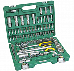 Набор головок и вставок торцевых в чемодане 96 предметов. В наборе: головки 1/4 (6РТ), головки глубокие 1/4 (6РТ), головки 1/2 (6РТ), головки глубокие 1/2 (6РТ), трещотка 1/4", удлинитель 1/4", вороток с плавающей головкой 1/4", кардан 1/4", вороток-отвертка, удлинитель 1/4", трещотка 1/2", удлинитель 1/2". свечная головка 1/2" 14 мм, свечная головка 1/2" 16 мм, кардан 1/2", держатель для бит 5/16", переходник 3/8 (F)х1/2(М), головки с насадкой 1/4 (биты S2, длина 37 мм.), биты 5/6" (S2, длина 30 мм.)