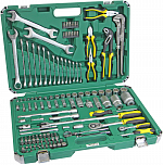 Набор инструментов 1/4" & 1/2" 6-гранный (в кейсе) 85 предметов. В наборе: головки торцевые 1/4", головки с насадкой HEX 1/4", головки с насадкой TORX 1/4", головки с шлицевой насадкой 1/4", головка с насадкой PH 1/4", насадки PZ 1/4", головки торцевые 1/2", свечная головка 1/2", насадка 5/16 HEX 1/2", насадки 5/16 TORX 1/2", насадки 5/16 PH 1/2" для ударной отвертки PH3, PH4, насадки 5/16 PZ 1/2", держатель бит: 1/2х5/16, трещотка 1/4 36 зубцов (резиновая ручка), удлинитель 1/4 50 и 100мм, кардан 1/4", вороток-отвертка 1/4", вороток 1/4" с плавающей головкой, гибкий вал 1/4", трещотка 1/2 36 зубцов, удлинитель 1/2" 125 и 250мм, кардан 1/2", переходник 3/8х1/2 с отверстием, ключи рожково-накидные.