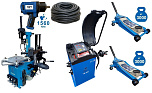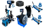 Комплект: шиномонтажный станок TS-21 для дисков: внешний 11÷20” + пистолет с манометром для подкачки шин + монтажка + пластиковые накладки на зажимные кулачки + регулятор давления с влагоотделителем и манометром. + TS-500 балансировочный станок с автозапуском, для колес легковых автомобилей и легких грузовиков, диаметр диска с резиной до 760 мм. размеры диска: ширина 3"–9” (76-228 мм), диаметр диска 10"–21” (254-533 мм). + кожух защитный + клещи + кронциркуль + быстрозажимная гайка + набор конусов + подкатной домкрат г/п 3,0т. 130-465мм. + ударный пневмогайковерт 1/2" крутящий момент 745Нм + шланг кислородный 9мм 20Атм. 10м