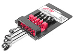 Ключи из прочной хром-ванадиевой стали с зеркальной полировкой. Обладают уникальным 72-зубцовым механизмом, обеспечивающим высокий крутящий момент. Угол перемещения механизма в 5° позволяет использовать инструменты в узких и труднодоступных местах. Размеры в комплекте: 8, 10, 12, 14 мм.