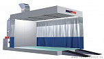 Данная зона подготовки имеет боковой забор воздуха и обладает функцией притока, вытяжки и рециркуляции воздушных масс. Также имеется функция поддержания заданной температуры окраски – до 25 град.