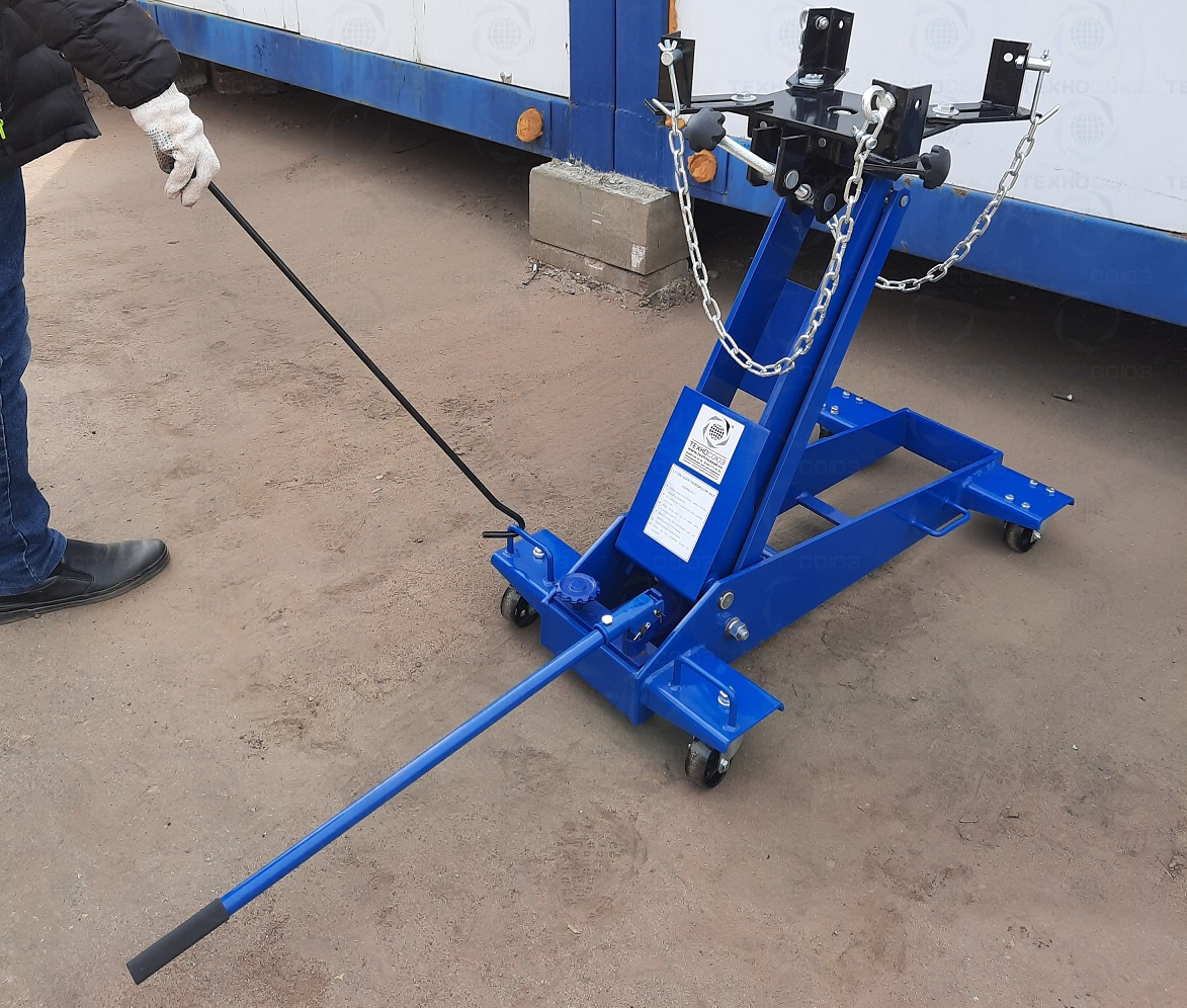 Домкрат трансмиссионный для снятия/установки ОСОБО ТЯЖЕЛЫХ АГРЕГАТОВ (КПП, мостов и т.п.) г/п 1 т. Подъем 230-760 мм. Устойчивый и маневренный – два колеса поворотные. Оборудован страховочной цепью, для фиксации агрегата. Приемная площадка регулируется с фиксацией в трех плоскостях: продольно, по наклону, по оси вращения.