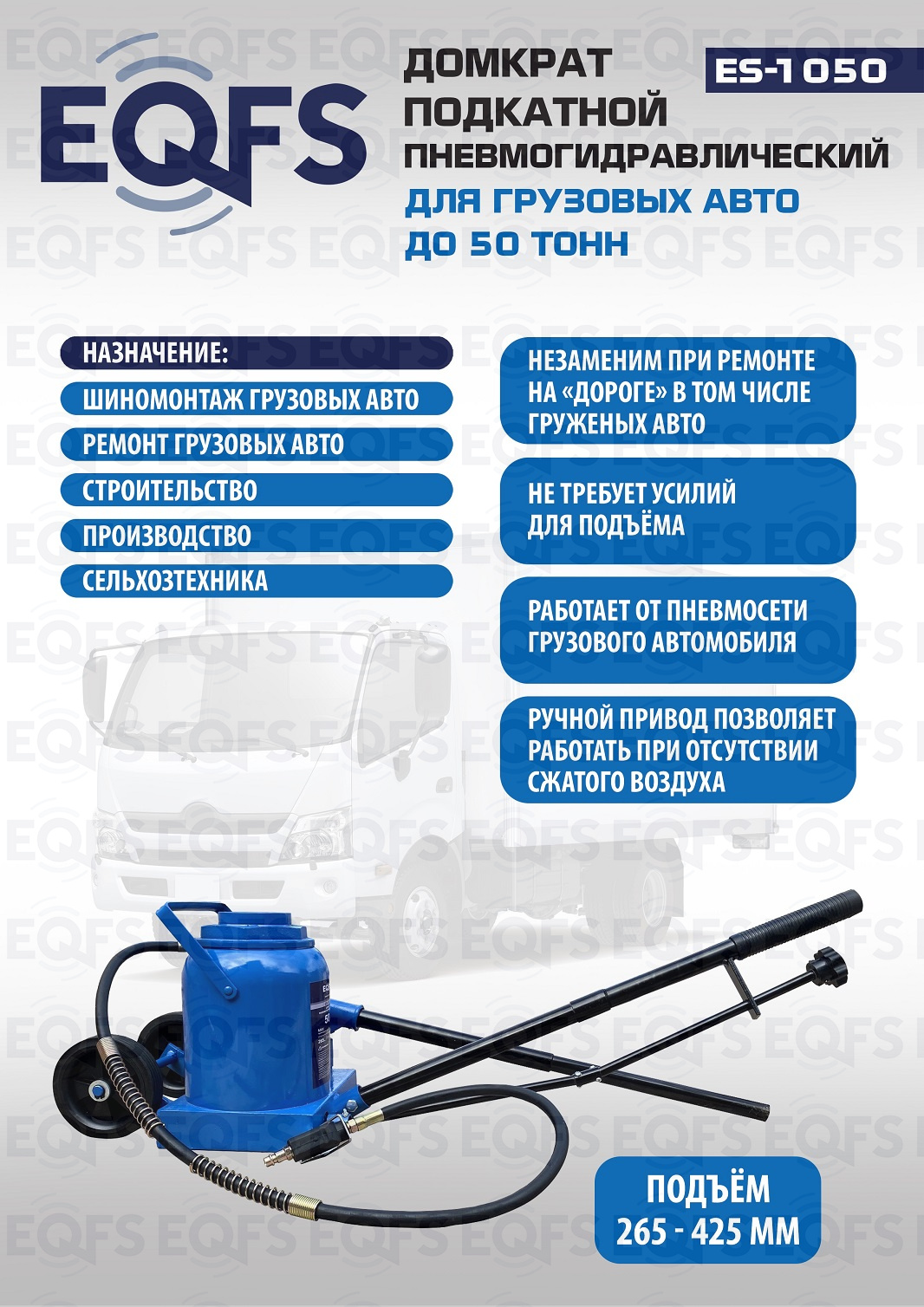 Технические особенности (Грузовой подкатной пневмогидравлический домкрат 50 тонн):