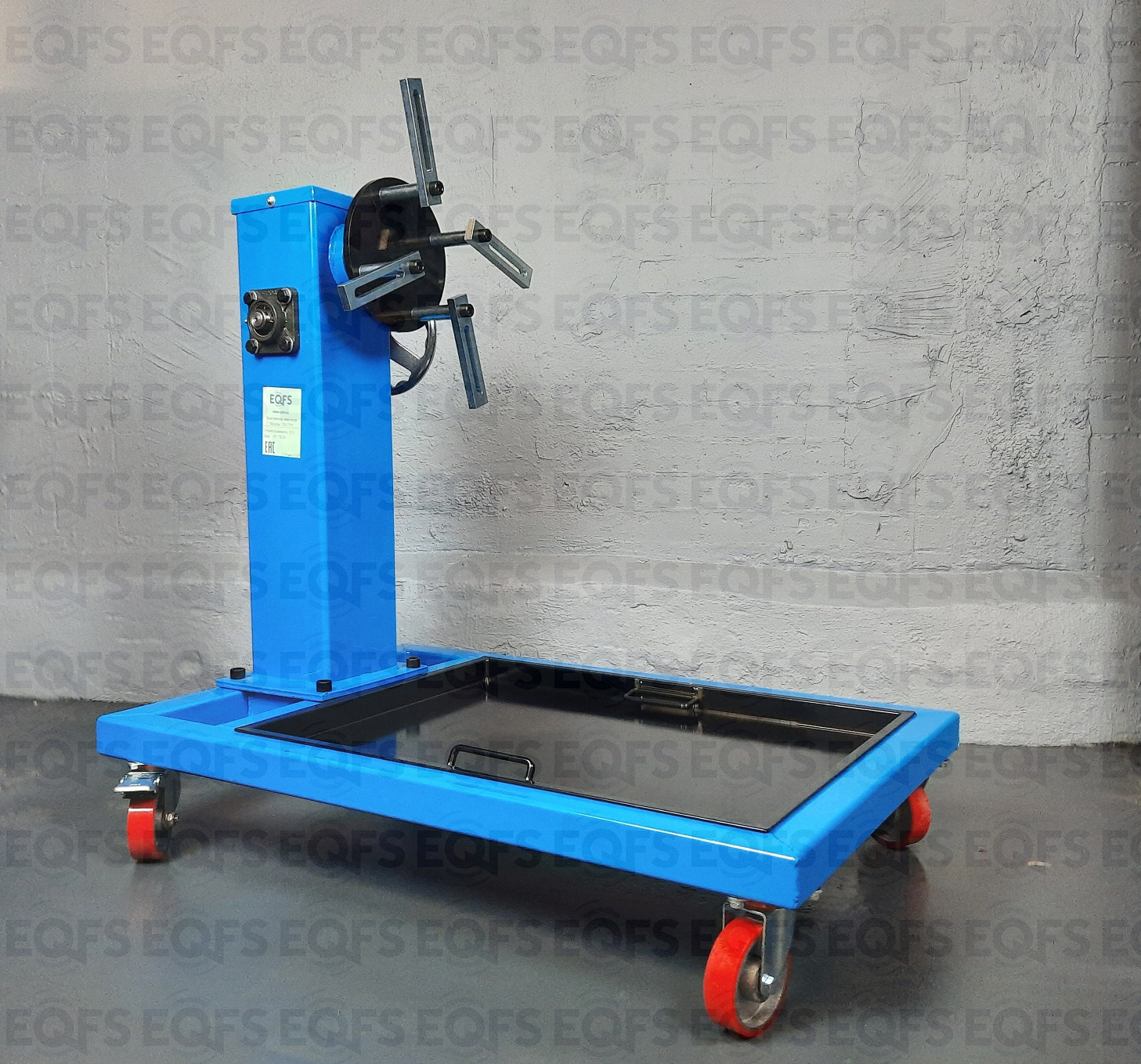 Оснащен редуктором для легкого и быстрого вращения одной рукой. Редуктор позволяет поворачивать вывешенный двигатель под углом 360°. Надежная сварная конструкция и 4 поворотных колеса обеспечивают маневренность и устойчивость к перевороту. В комплекте поддон для сбора отработанного масла. С 4-мя регулируемыми кронштейнами для удобства вывешивания и обслуживания ДВС легковых и легких грузовиков. Можно установить кантователь вплотную к моторному отсеку автомобиля. Для сборки/разборки моторов V6 и V8. г/п: 500 кг.
