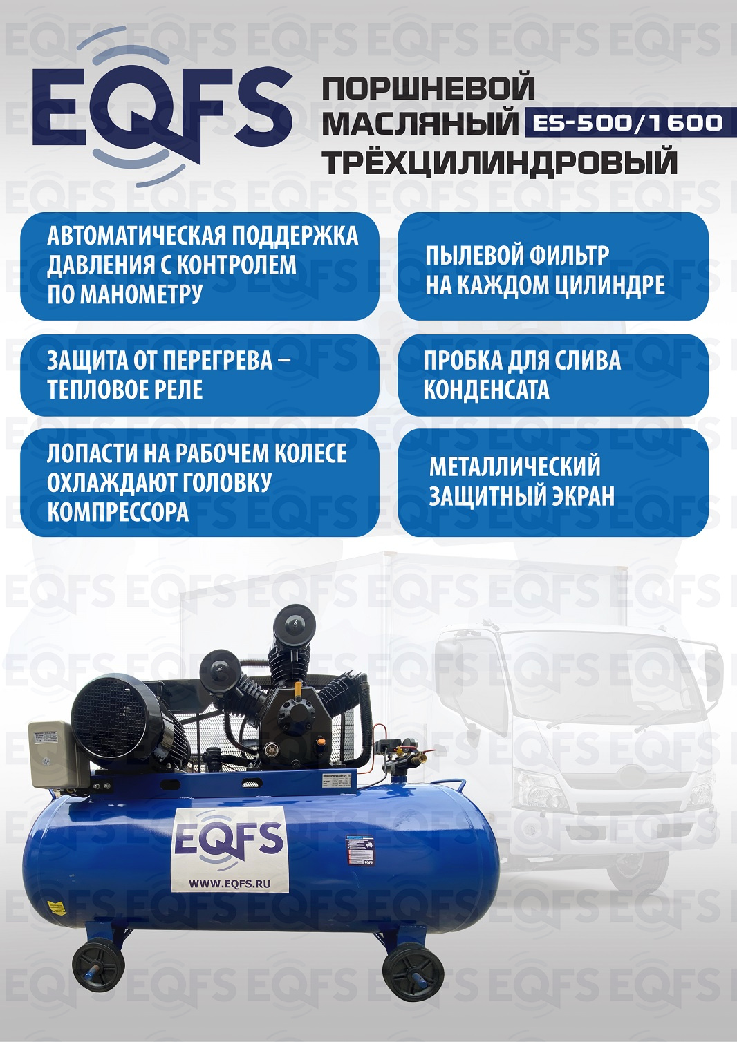 Компрессор воздушный, передвижной, поршневой, масляный, трёхцилиндровый. Быстро достигает нужного давления. Трёхпоршневая головка двигателя уменьшает износ деталей и увеличивает срок службы. Ремённый привод — предохранят мотор от поломки. Идеальное решение для шиномонтажа, автосервиса, строительства, покраски, промышленности. Давление 12,5 Атм. Производительность 1600 л/мин. Мощность 11,2 кВт. Напряжение 380В. Ёмкость ресивера 500 л. Гарантия 12 месяцев.