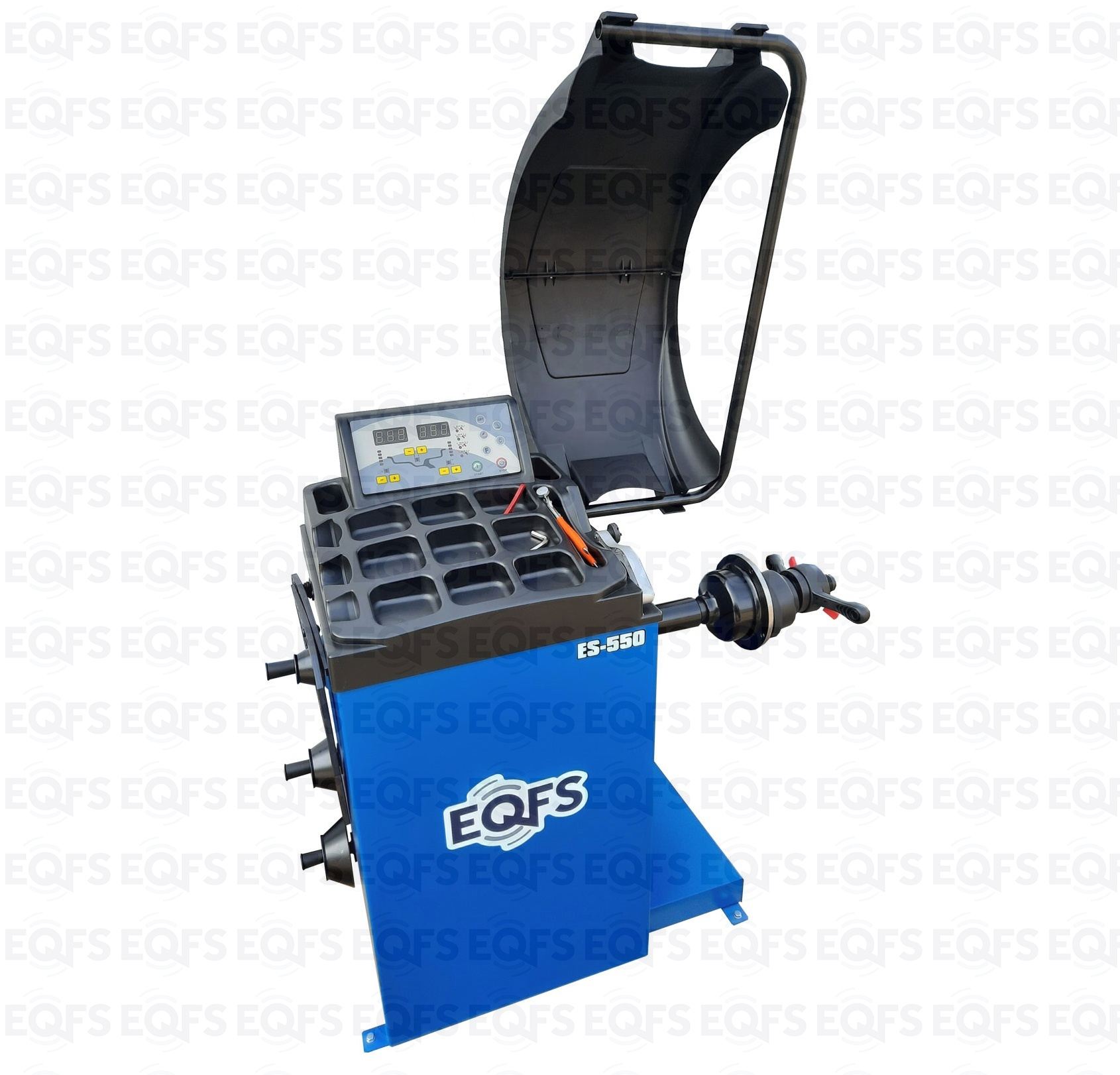 ES-550 Балансировочный станок. Полуавтомат. Удобный и понятный интерфейс. Автозапуск опусканием кожуха. Автоматический ввод дистанции и диаметра диска. Лазерная навигация. Автокалибровка. Для колес легковых автомобилей, мотоциклов, «Газелей», «Спринтеров» с диаметром диска с резиной до 800 мм. Размеры диска: ширина 3–10” (76-254 мм) , диаметр диска 10–24” (254÷609 мм). Вес ≤ 65 кг. Вал- 36 мм. Точность ±1гр. 220 В. Режимы работы DINAMIC, STATIC, ALU1, ALU2, ALU3, ALUS, ST. Гарантия 12 мес. В комплекте: кожух с автозапуском + клещи + кронциркуль + быстрозажимная гайка + набор конусов.