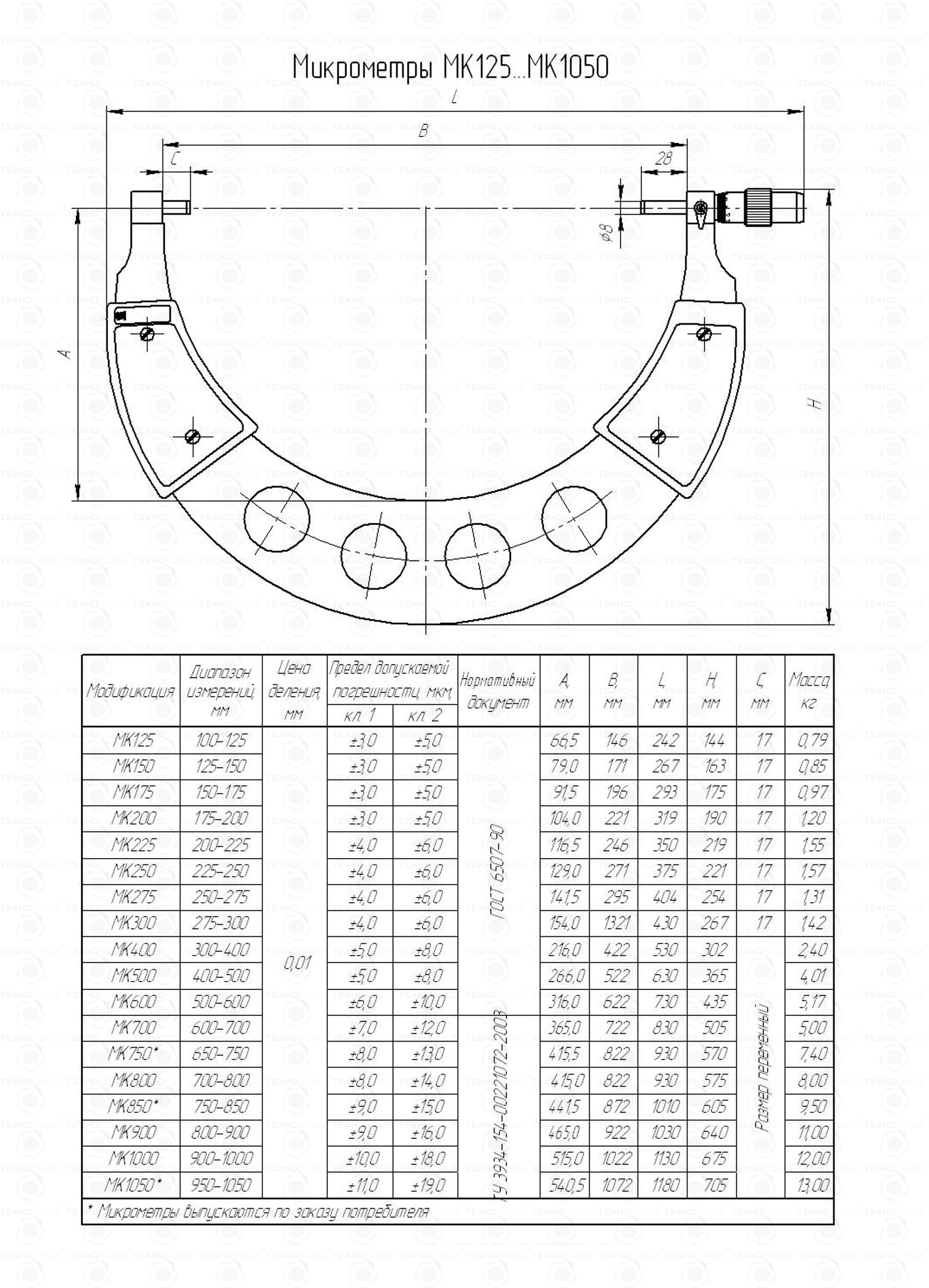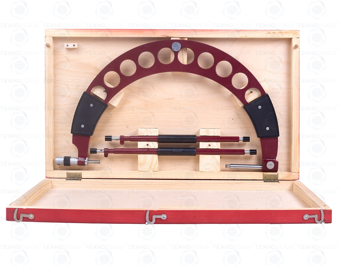 Цена деления 0,01 мм. Диапазон измерения от 800-900 мм. Для измерения наружных размеров изделий. Измерительные поверхности микрометра оснащены твердым сплавом. Микрометры укомплектованы установочная мера 2 шт. Класса точности 1. ГОСТ 6507-90. Поставляется в двух вариантах с поверкой и без поверки!