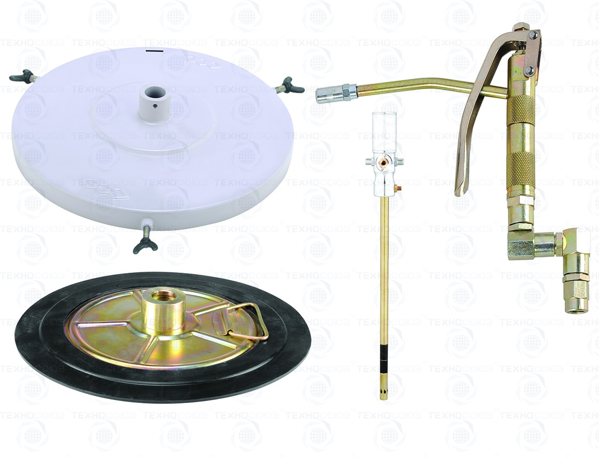 Жесткий алюминиевый наконечник позволяет производить смазку в труднодоступных местах автомобилей и оборудования. Фиксация насоса с крышкой к смазочному баку производится с помощью металлических защелок с резьбой.