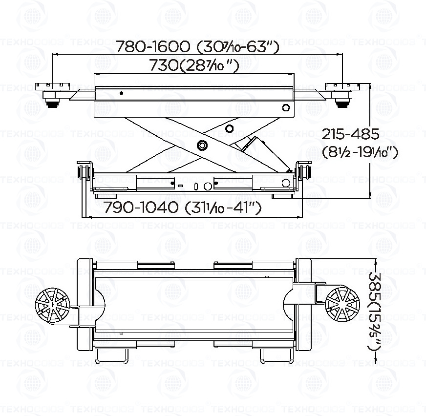 Траверса гидравлическая ручная. г/п. 3 тонны. Идеально подходит для ямы, четырехстоечного или ножничного подъемника. Для канавы шириной 790-1040 мм с регулируемой длиной платформ 780-1600 мм. Высота подъёма 215-485 мм.